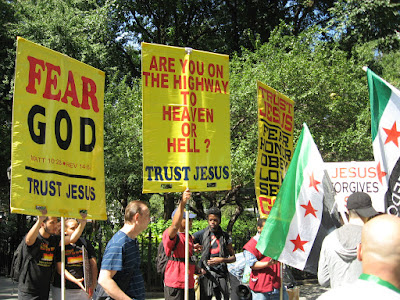 A group of Christian proselytizers were not greeted warmly at the parade. So much for brotherly love and all that 'people of the book' taqiyya.
